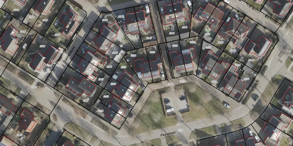 Gebruik de zoekbalk of klik op een perceel voor informatie over de adressen binnen dit perceel.