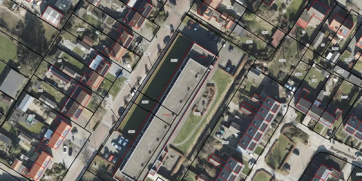 Het perceel waarop J. de Walstraat 12 staat heeft een oppervlakte van 1219 m². Dit is een zeer groot perceel. De perceeloppervlakte wordt geregistreerd door het Kadaster. Gedetailleerde informatie over de maten van dit perceel kunt u vinden in het rapport Kadastrale kaart met maatvoering van J. de Walstraat 12.