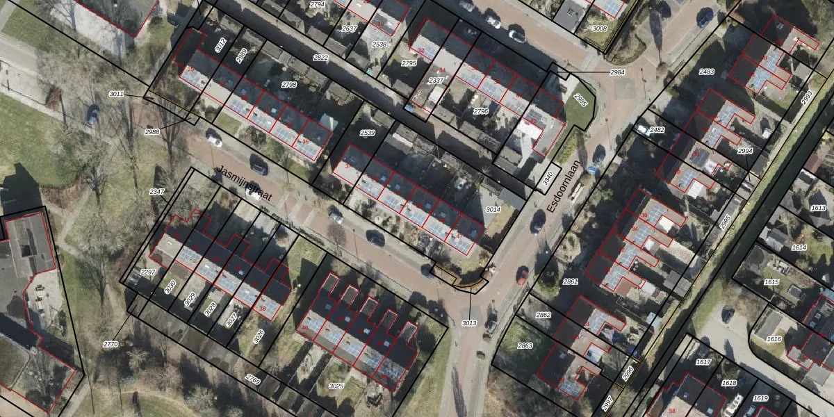 Het perceel waarop Jasmijnstraat 43 staat heeft een oppervlakte van 898 m². Dit is een groot perceel. De perceeloppervlakte wordt geregistreerd door het Kadaster. Gedetailleerde informatie over de maten van dit perceel kunt u vinden in het rapport Kadastrale kaart met maatvoering van Jasmijnstraat 43.
