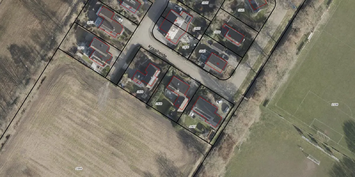 Het perceel waarop Kraaiheide 13 staat heeft een oppervlakte van 519 m². Dit is een groot perceel. De perceeloppervlakte wordt geregistreerd door het Kadaster. Gedetailleerde informatie over de maten van dit perceel kunt u vinden in het rapport Kadastrale kaart met maatvoering van Kraaiheide 13.