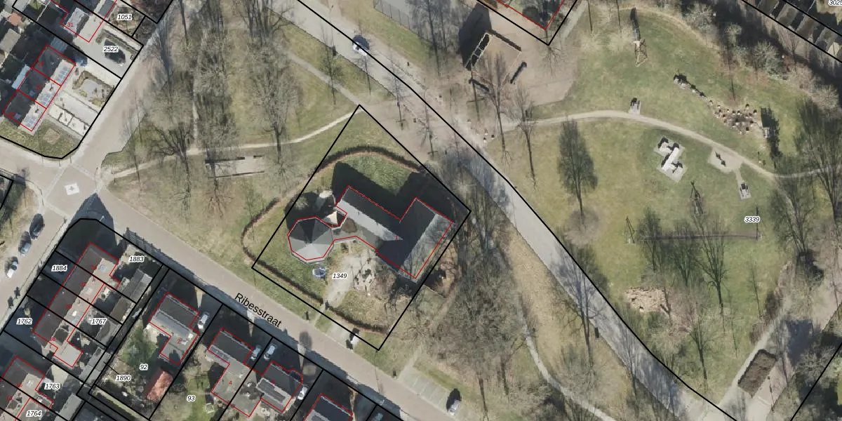 Het perceel waarop Ribesstraat 1-B staat heeft een oppervlakte van 1552 m². Dit is een zeer groot perceel. De perceeloppervlakte wordt geregistreerd door het Kadaster. Gedetailleerde informatie over de maten van dit perceel kunt u vinden in het rapport Kadastrale kaart met maatvoering van Ribesstraat 1-B.