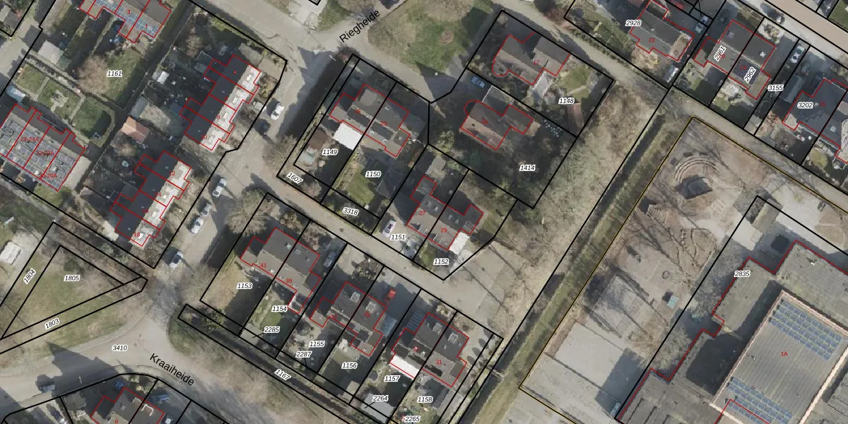Het perceel waarop Riegheide 27 staat heeft een oppervlakte van 292 m². Dit is een middelgroot perceel. De perceeloppervlakte wordt geregistreerd door het Kadaster. Gedetailleerde informatie over de maten van dit perceel kunt u vinden in het rapport Kadastrale kaart met maatvoering van Riegheide 27.