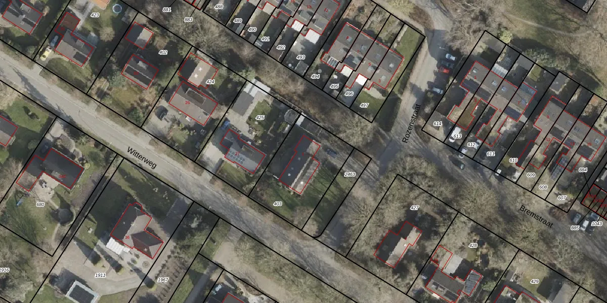 Gebruik de zoekbalk of klik op een perceel voor informatie over de adressen binnen dit perceel.