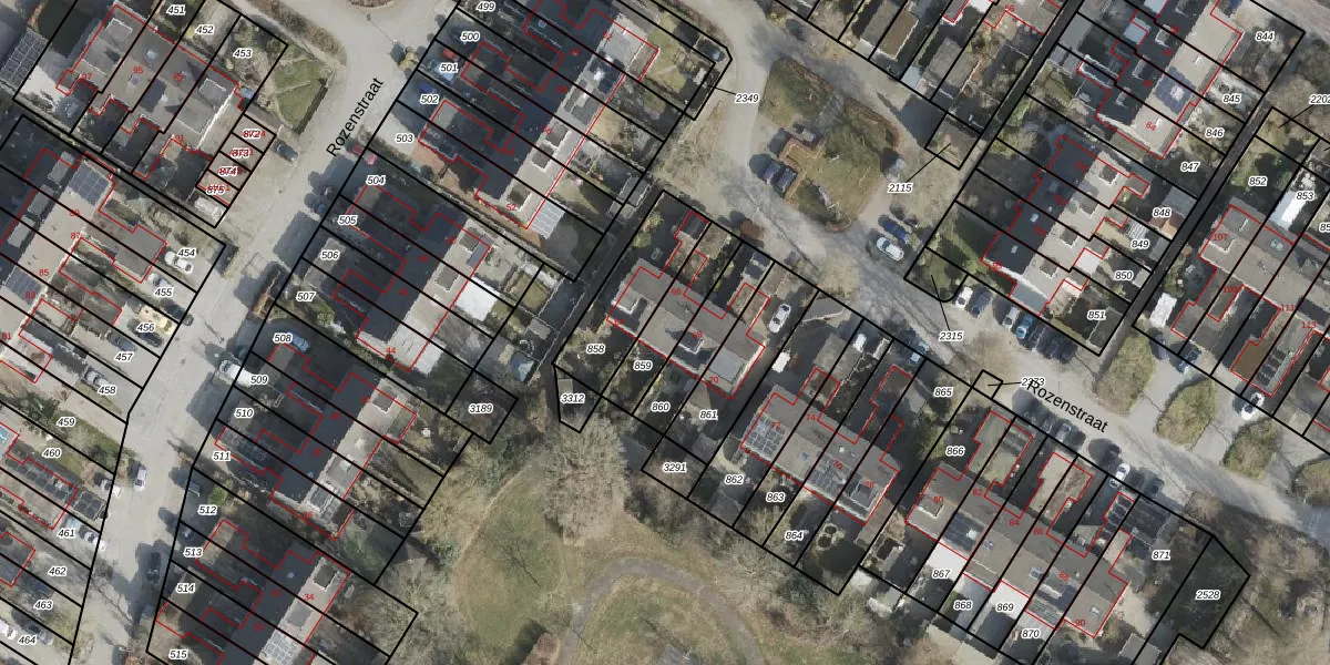 Het perceel waarop Rozenstraat 66 staat heeft een oppervlakte van 172 m². Dit is een middelgroot perceel. De perceeloppervlakte wordt geregistreerd door het Kadaster. Gedetailleerde informatie over de maten van dit perceel kunt u vinden in het rapport Kadastrale kaart met maatvoering van Rozenstraat 66.