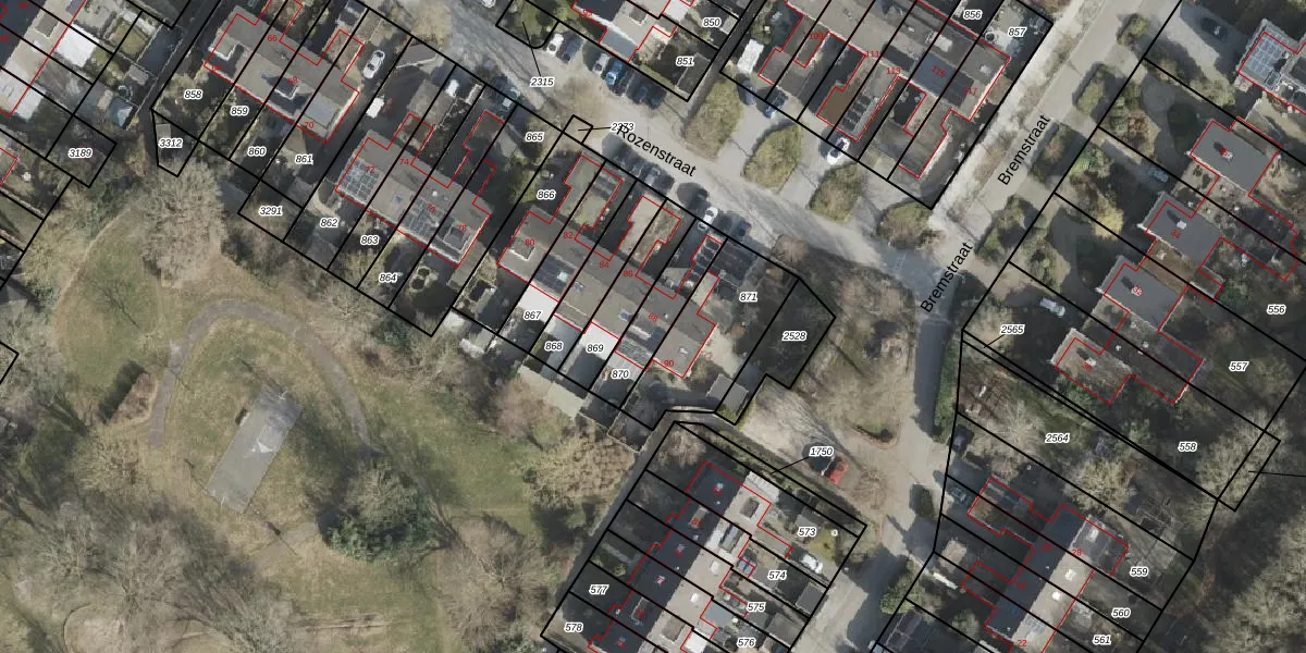 Gebruik de zoekbalk of klik op een perceel voor informatie over de adressen binnen dit perceel.