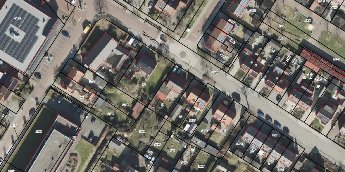 Het perceel waarop Schoolstraat 14 staat heeft een oppervlakte van 403 m². Dit is een groot perceel. De perceeloppervlakte wordt geregistreerd door het Kadaster. Gedetailleerde informatie over de maten van dit perceel kunt u vinden in het rapport Kadastrale kaart met maatvoering van Schoolstraat 14.