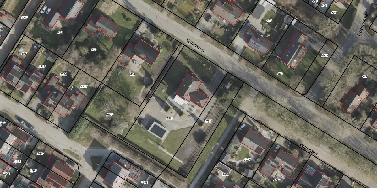 Witterweg 36 is gelegen op kadastraal perceel SDE01L1911. Deze kadastrale aanduiding is uniek en wordt gebruikt door het Kadaster om eigendomsrechten en andere zakelijke rechten vast te leggen. Het perceel maakt onderdeel uit van de kadastrale gemeente Smilde.