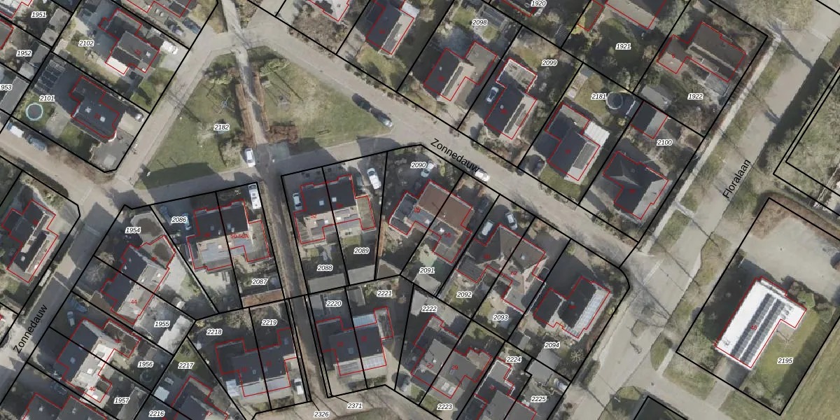 Zonnedauw 56 is gelegen op kadastraal perceel SDE01L2090. Deze kadastrale aanduiding is uniek en wordt gebruikt door het Kadaster om eigendomsrechten en andere zakelijke rechten vast te leggen. Het perceel maakt onderdeel uit van de kadastrale gemeente Smilde.