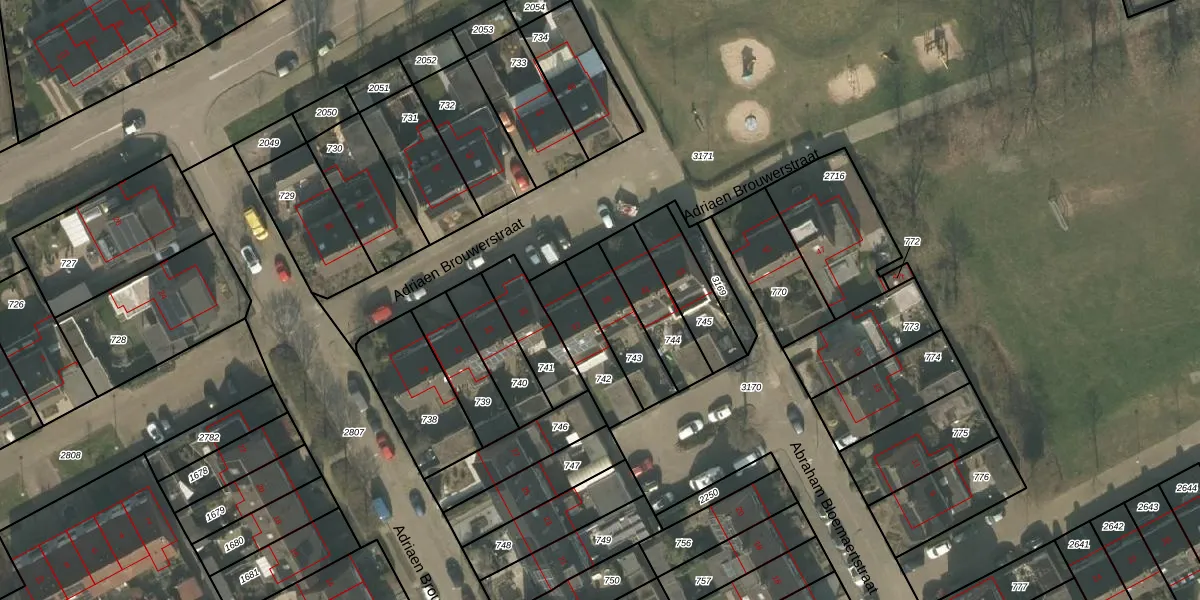Het perceel waarop Adriaen Brouwerstraat 39 staat heeft een oppervlakte van 182 m². Dit is een middelgroot perceel. De perceeloppervlakte wordt geregistreerd door het Kadaster. Gedetailleerde informatie over de maten van dit perceel kunt u vinden in het rapport Kadastrale kaart met maatvoering van Adriaen Brouwerstraat 39.