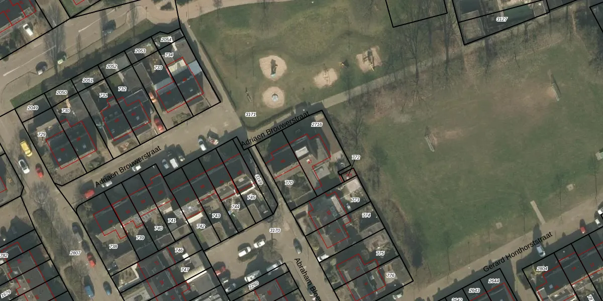 Het perceel waarop Adriaen Brouwerstraat 47 staat heeft een oppervlakte van 352 m². Dit is een groot perceel. De perceeloppervlakte wordt geregistreerd door het Kadaster. Gedetailleerde informatie over de maten van dit perceel kunt u vinden in het rapport Kadastrale kaart met maatvoering van Adriaen Brouwerstraat 47.