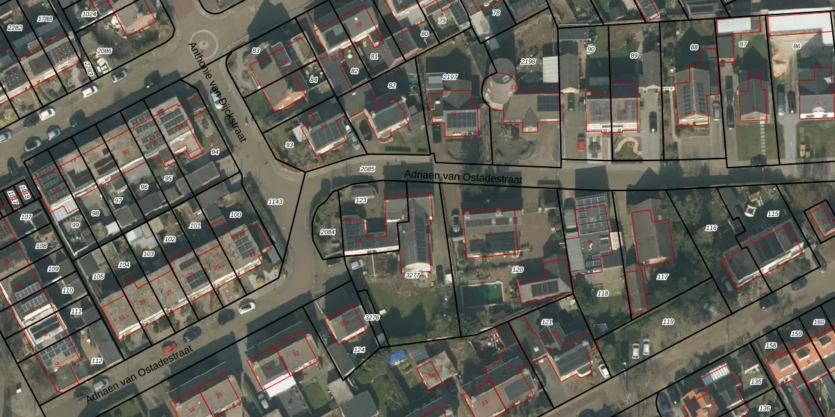 Adriaen van Ostadestraat 8 is gelegen op kadastraal perceel BMR00L3277. Deze kadastrale aanduiding is uniek en wordt gebruikt door het Kadaster om eigendomsrechten en andere zakelijke rechten vast te leggen. Het perceel maakt onderdeel uit van de kadastrale gemeente Boxmeer.