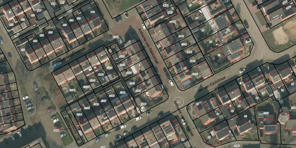 Anthonie van Dijckstraat 6 is gelegen op kadastraal perceel BMR00L1023. Deze kadastrale aanduiding is uniek en wordt gebruikt door het Kadaster om eigendomsrechten en andere zakelijke rechten vast te leggen. Het perceel maakt onderdeel uit van de kadastrale gemeente Boxmeer.