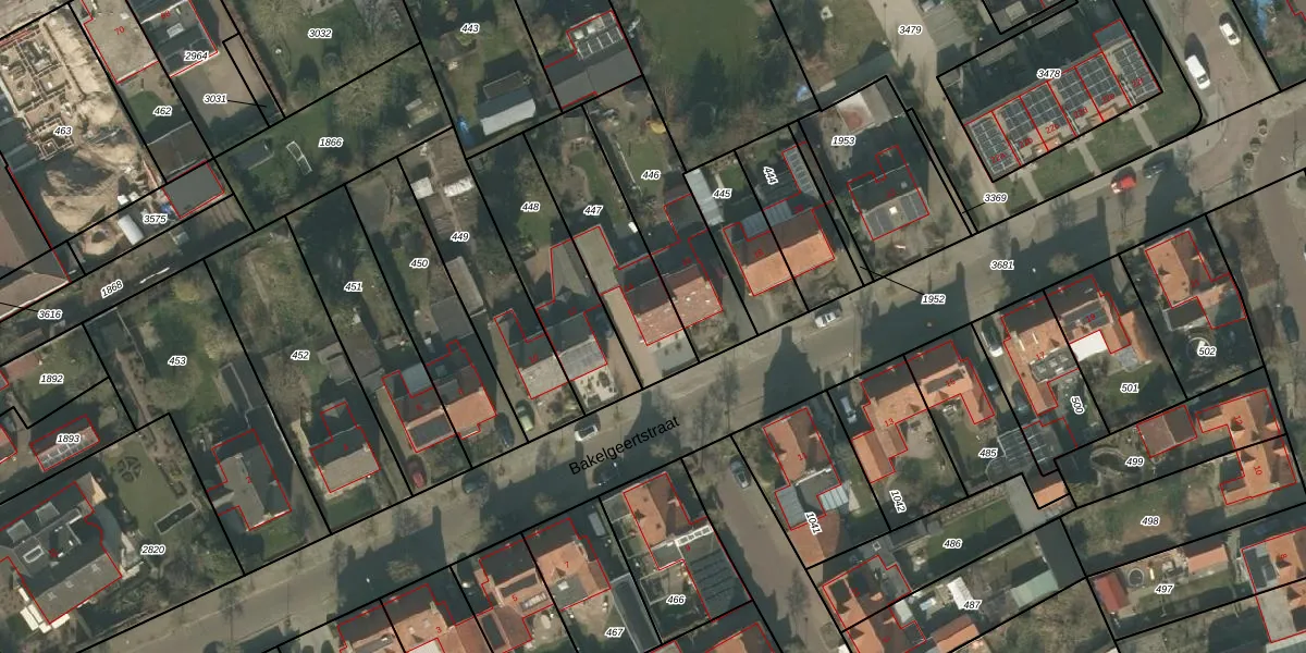 Bakelgeertstraat 14 is gelegen op kadastraal perceel BMR00L447. Deze kadastrale aanduiding is uniek en wordt gebruikt door het Kadaster om eigendomsrechten en andere zakelijke rechten vast te leggen. Het perceel maakt onderdeel uit van de kadastrale gemeente Boxmeer.