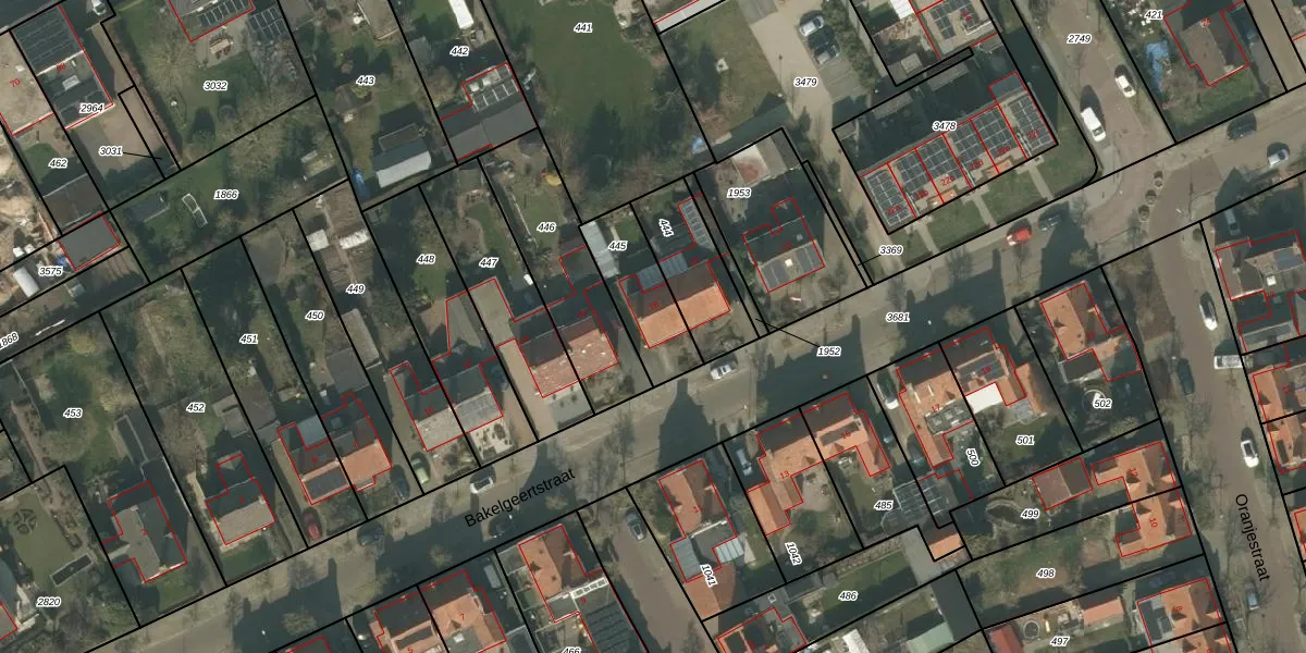 Gebruik de zoekbalk of klik op een perceel voor informatie over de adressen binnen dit perceel.