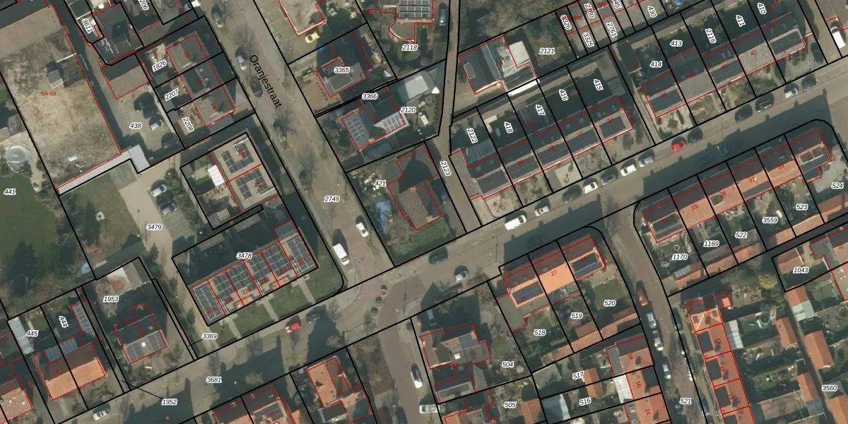 Gebruik de zoekbalk of klik op een perceel voor informatie over de adressen binnen dit perceel.