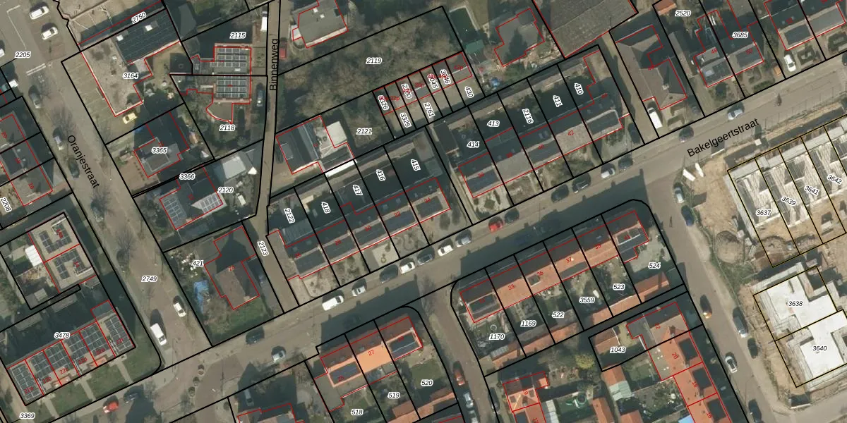 Gebruik de zoekbalk of klik op een perceel voor informatie over de adressen binnen dit perceel.