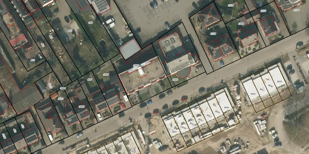 Het perceel waarop Bakelgeertstraat 64-a staat heeft een oppervlakte van 900 m². Dit is een groot perceel. De perceeloppervlakte wordt geregistreerd door het Kadaster. Gedetailleerde informatie over de maten van dit perceel kunt u vinden in het rapport Kadastrale kaart met maatvoering van Bakelgeertstraat 64-a.