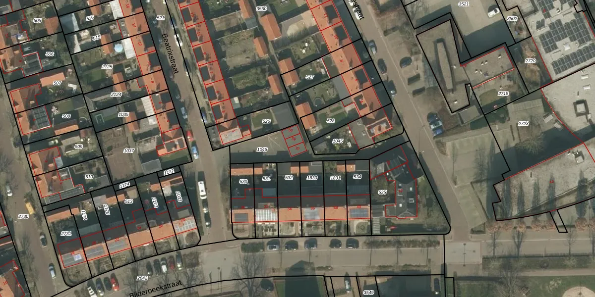 Het perceel waarop Beatrixstraat 1-p staat heeft een oppervlakte van 623 m². Dit is een groot perceel. De perceeloppervlakte wordt geregistreerd door het Kadaster. Gedetailleerde informatie over de maten van dit perceel kunt u vinden in het rapport Kadastrale kaart met maatvoering van Beatrixstraat 1-p.