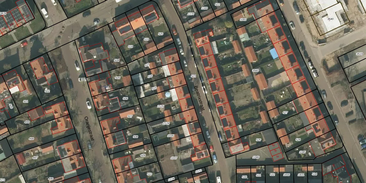 Het perceel waarop Beatrixstraat 12 staat heeft een oppervlakte van 383 m². Dit is een groot perceel. De perceeloppervlakte wordt geregistreerd door het Kadaster. Gedetailleerde informatie over de maten van dit perceel kunt u vinden in het rapport Kadastrale kaart met maatvoering van Beatrixstraat 12.