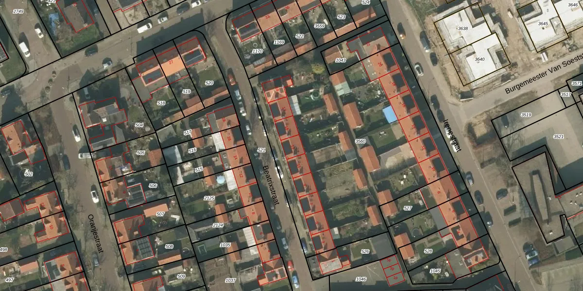 Het perceel waarop Beatrixstraat 13 staat heeft een oppervlakte van 3223 m². Dit is een zeer groot perceel. De perceeloppervlakte wordt geregistreerd door het Kadaster. Gedetailleerde informatie over de maten van dit perceel kunt u vinden in het rapport Kadastrale kaart met maatvoering van Beatrixstraat 13.