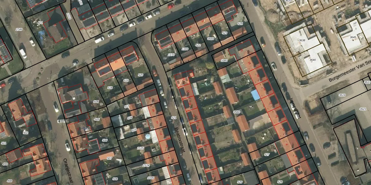 Het perceel waarop Beatrixstraat 17 staat heeft een oppervlakte van 3223 m². Dit is een zeer groot perceel. De perceeloppervlakte wordt geregistreerd door het Kadaster. Gedetailleerde informatie over de maten van dit perceel kunt u vinden in het rapport Kadastrale kaart met maatvoering van Beatrixstraat 17.