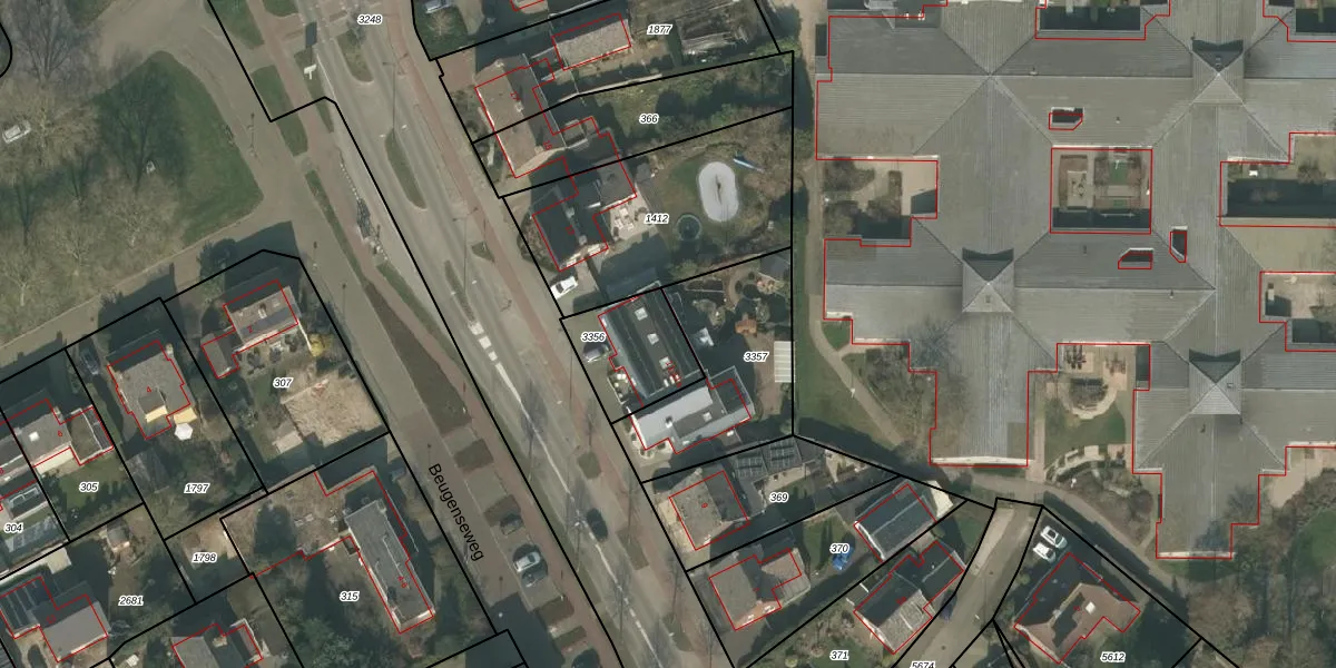 Beugenseweg 11-d is gelegen op kadastraal perceel BMR00L3356. Deze kadastrale aanduiding is uniek en wordt gebruikt door het Kadaster om eigendomsrechten en andere zakelijke rechten vast te leggen. Het perceel maakt onderdeel uit van de kadastrale gemeente Boxmeer.