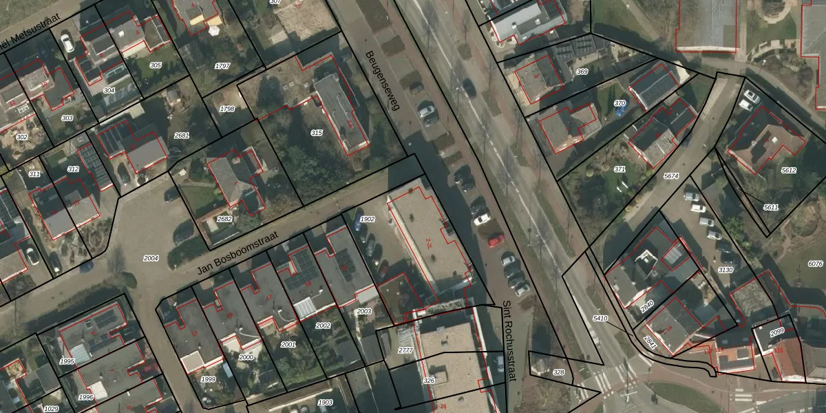 Het perceel waarop Beugenseweg 2-g staat heeft een oppervlakte van 755 m². Dit is een groot perceel. De perceeloppervlakte wordt geregistreerd door het Kadaster. Gedetailleerde informatie over de maten van dit perceel kunt u vinden in het rapport Kadastrale kaart met maatvoering van Beugenseweg 2-g.