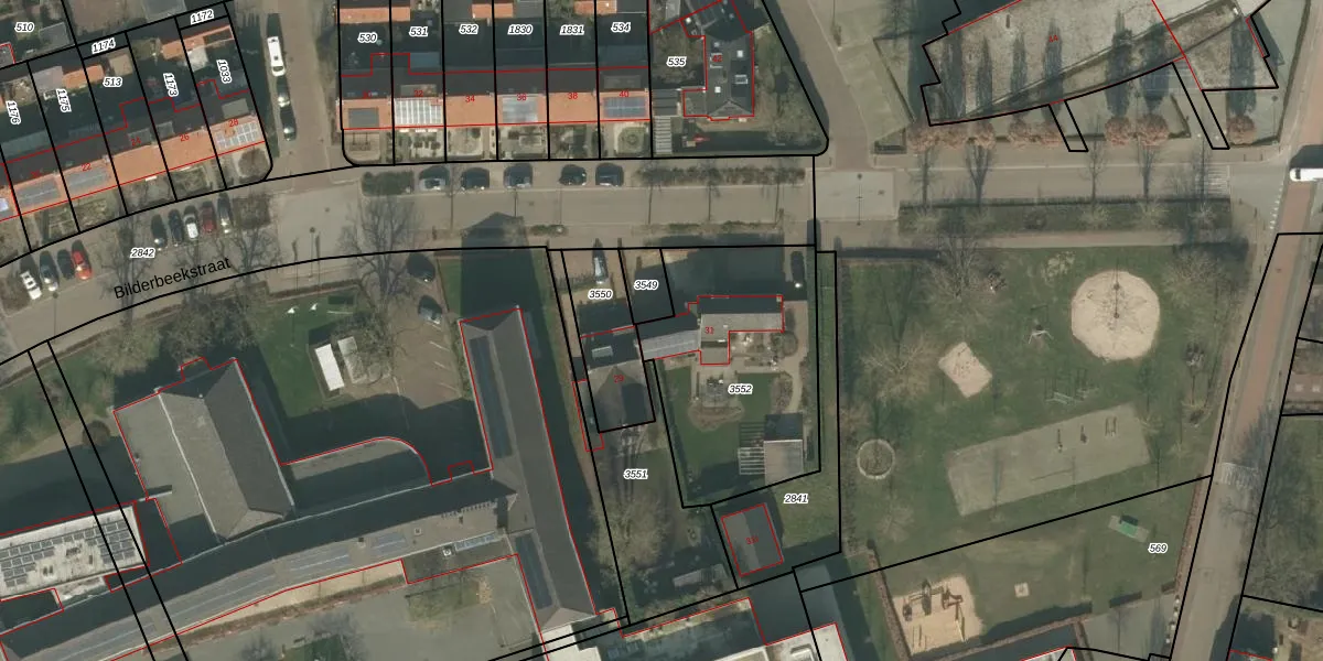 Bilderbeekstraat 31 is gelegen op kadastraal perceel BMR00L3552. Deze kadastrale aanduiding is uniek en wordt gebruikt door het Kadaster om eigendomsrechten en andere zakelijke rechten vast te leggen. Het perceel maakt onderdeel uit van de kadastrale gemeente Boxmeer.