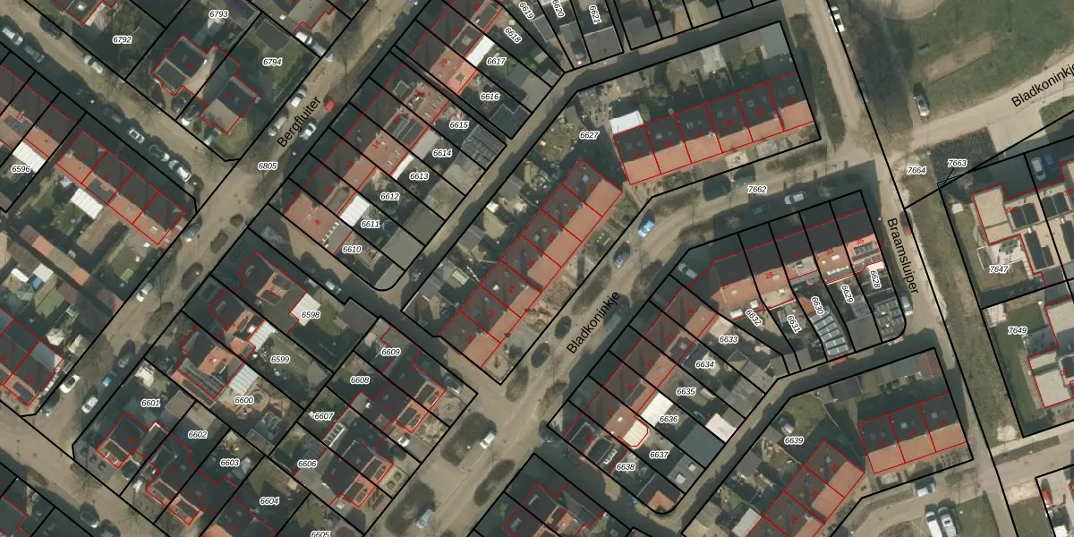 Bladkoninkje 16 is gelegen op kadastraal perceel BMR00D6627. Deze kadastrale aanduiding is uniek en wordt gebruikt door het Kadaster om eigendomsrechten en andere zakelijke rechten vast te leggen. Het perceel maakt onderdeel uit van de kadastrale gemeente Boxmeer.