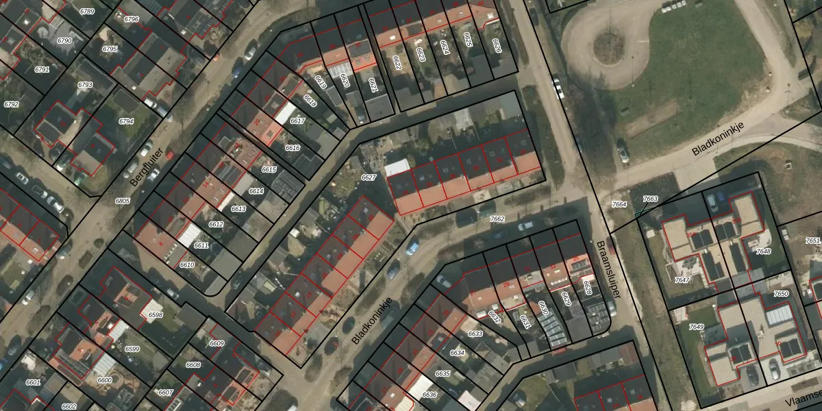 Het perceel waarop Bladkoninkje 24 staat heeft een oppervlakte van 1975 m². Dit is een zeer groot perceel. De perceeloppervlakte wordt geregistreerd door het Kadaster. Gedetailleerde informatie over de maten van dit perceel kunt u vinden in het rapport Kadastrale kaart met maatvoering van Bladkoninkje 24.