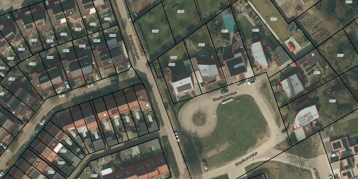 Bladkoninkje 47 is gelegen op kadastraal perceel BMR00D6869. Deze kadastrale aanduiding is uniek en wordt gebruikt door het Kadaster om eigendomsrechten en andere zakelijke rechten vast te leggen. Het perceel maakt onderdeel uit van de kadastrale gemeente Boxmeer.