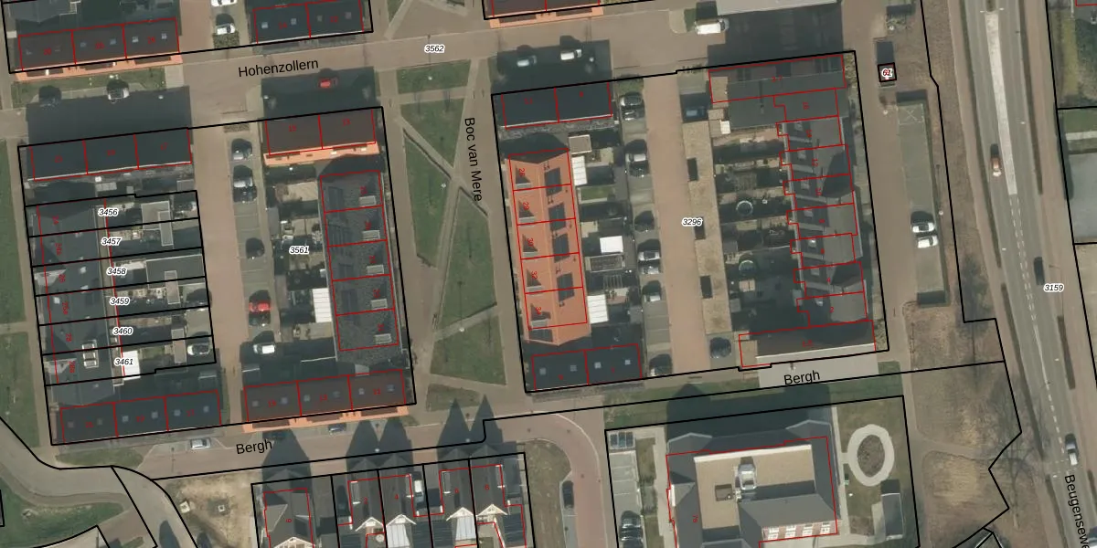 Boc van Mere 32 is gelegen op kadastraal perceel BMR00L3296. Deze kadastrale aanduiding is uniek en wordt gebruikt door het Kadaster om eigendomsrechten en andere zakelijke rechten vast te leggen. Het perceel maakt onderdeel uit van de kadastrale gemeente Boxmeer.