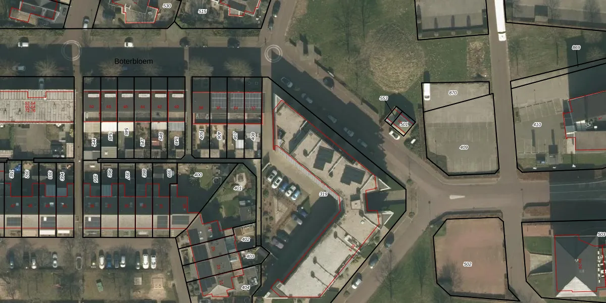 Boterbloem 22 is gelegen op kadastraal perceel BMR00S319. Deze kadastrale aanduiding is uniek en wordt gebruikt door het Kadaster om eigendomsrechten en andere zakelijke rechten vast te leggen. Het perceel maakt onderdeel uit van de kadastrale gemeente Boxmeer.