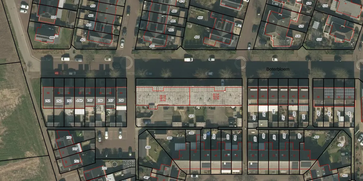 Boterbloem 56 is gelegen op kadastraal perceel BMR00S543. Deze kadastrale aanduiding is uniek en wordt gebruikt door het Kadaster om eigendomsrechten en andere zakelijke rechten vast te leggen. Het perceel maakt onderdeel uit van de kadastrale gemeente Boxmeer.