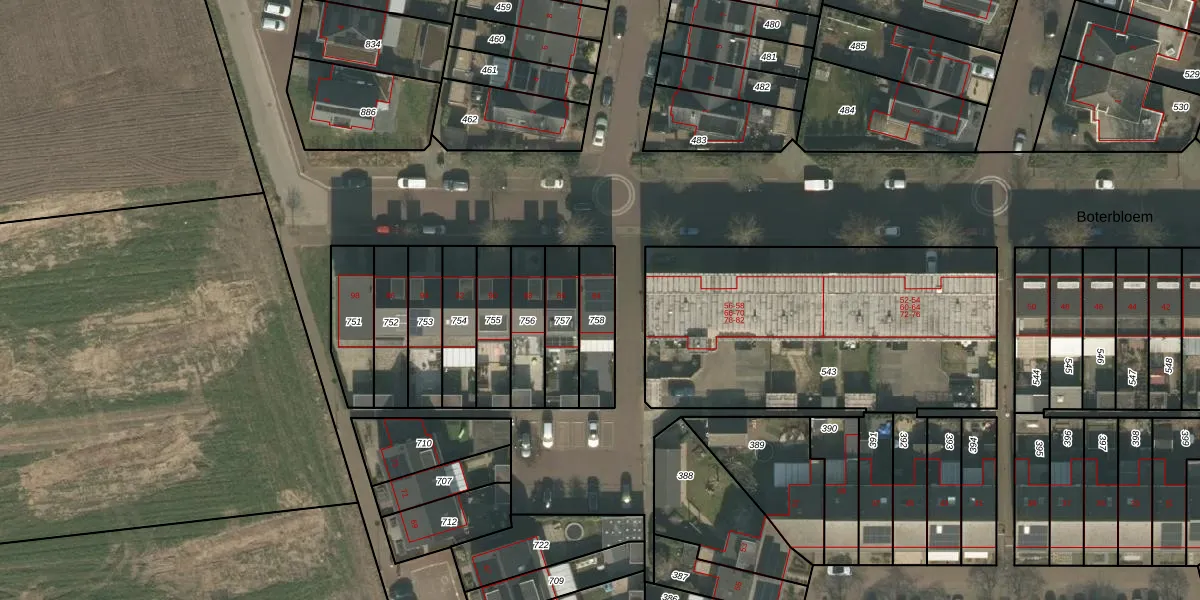 Boterbloem 84 is gelegen op kadastraal perceel BMR00S758. Deze kadastrale aanduiding is uniek en wordt gebruikt door het Kadaster om eigendomsrechten en andere zakelijke rechten vast te leggen. Het perceel maakt onderdeel uit van de kadastrale gemeente Boxmeer.