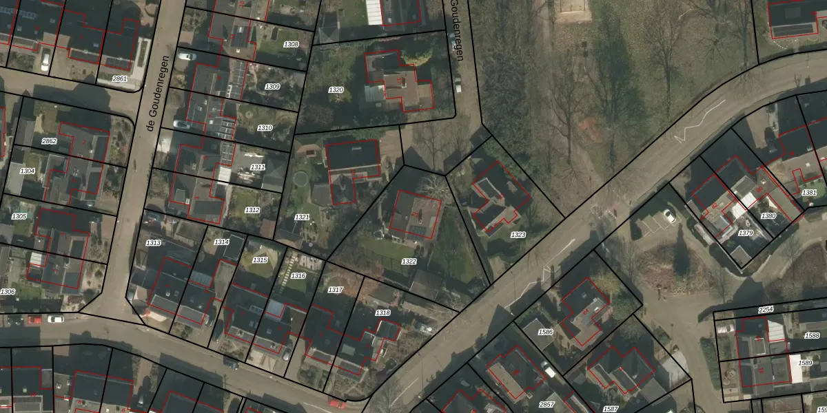 de Goudenregen 21 is gelegen op kadastraal perceel BMR00L1322. Deze kadastrale aanduiding is uniek en wordt gebruikt door het Kadaster om eigendomsrechten en andere zakelijke rechten vast te leggen. Het perceel maakt onderdeel uit van de kadastrale gemeente Boxmeer.
