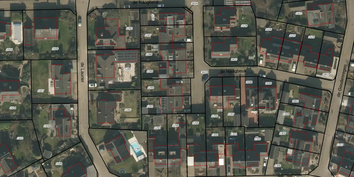 de Haagbeuk 14 is gelegen op kadastraal perceel BMR00L1290. Deze kadastrale aanduiding is uniek en wordt gebruikt door het Kadaster om eigendomsrechten en andere zakelijke rechten vast te leggen. Het perceel maakt onderdeel uit van de kadastrale gemeente Boxmeer.