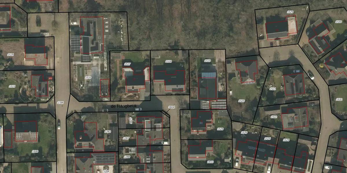 Het perceel waarop de Haagbeuk 15 staat heeft een oppervlakte van 592 m². Dit is een groot perceel. De perceeloppervlakte wordt geregistreerd door het Kadaster. Gedetailleerde informatie over de maten van dit perceel kunt u vinden in het rapport Kadastrale kaart met maatvoering van de Haagbeuk 15.