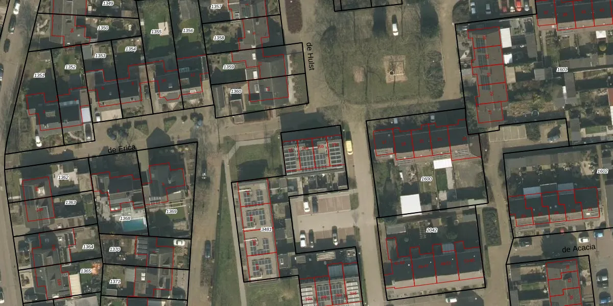 Het perceel waarop de Hulst 15-a staat heeft een oppervlakte van 1420 m². Dit is een zeer groot perceel. De perceeloppervlakte wordt geregistreerd door het Kadaster. Gedetailleerde informatie over de maten van dit perceel kunt u vinden in het rapport Kadastrale kaart met maatvoering van de Hulst 15-a.