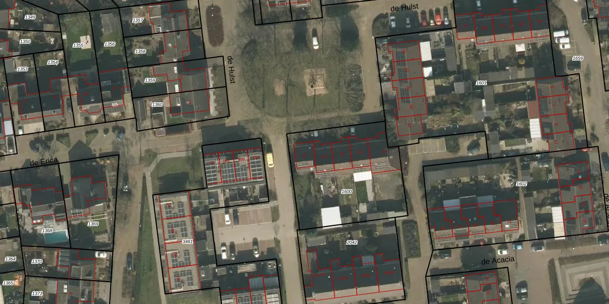 Het perceel waarop de Hulst 17 staat heeft een oppervlakte van 1120 m². Dit is een zeer groot perceel. De perceeloppervlakte wordt geregistreerd door het Kadaster. Gedetailleerde informatie over de maten van dit perceel kunt u vinden in het rapport Kadastrale kaart met maatvoering van de Hulst 17.