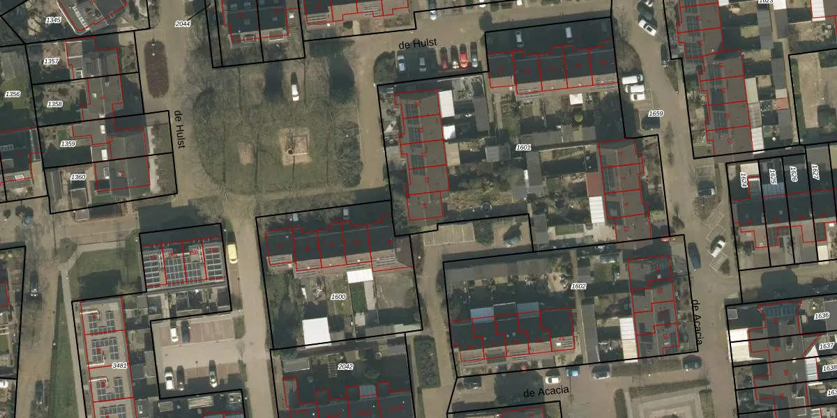 Het perceel waarop de Hulst 27 staat heeft een oppervlakte van 2718 m². Dit is een zeer groot perceel. De perceeloppervlakte wordt geregistreerd door het Kadaster. Gedetailleerde informatie over de maten van dit perceel kunt u vinden in het rapport Kadastrale kaart met maatvoering van de Hulst 27.