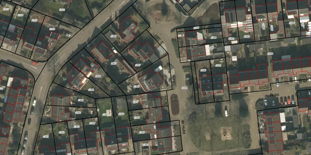 Het perceel waarop de Hulst 5 staat heeft een oppervlakte van 516 m². Dit is een groot perceel. De perceeloppervlakte wordt geregistreerd door het Kadaster. Gedetailleerde informatie over de maten van dit perceel kunt u vinden in het rapport Kadastrale kaart met maatvoering van de Hulst 5.