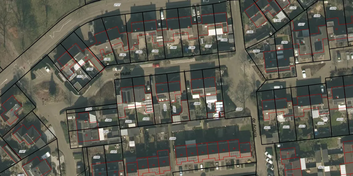 Het perceel waarop de Hulst 6 staat heeft een oppervlakte van 279 m². Dit is een middelgroot perceel. De perceeloppervlakte wordt geregistreerd door het Kadaster. Gedetailleerde informatie over de maten van dit perceel kunt u vinden in het rapport Kadastrale kaart met maatvoering van de Hulst 6.