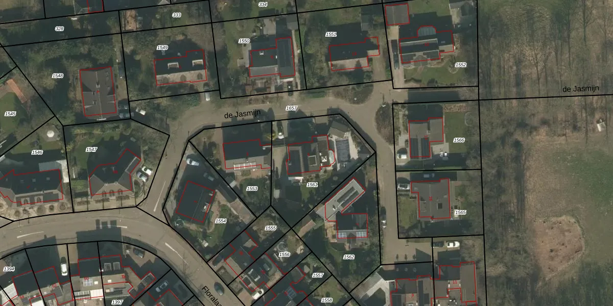 Het perceel waarop de Jasmijn 5 staat heeft een oppervlakte van 823 m². Dit is een groot perceel. De perceeloppervlakte wordt geregistreerd door het Kadaster. Gedetailleerde informatie over de maten van dit perceel kunt u vinden in het rapport Kadastrale kaart met maatvoering van de Jasmijn 5.