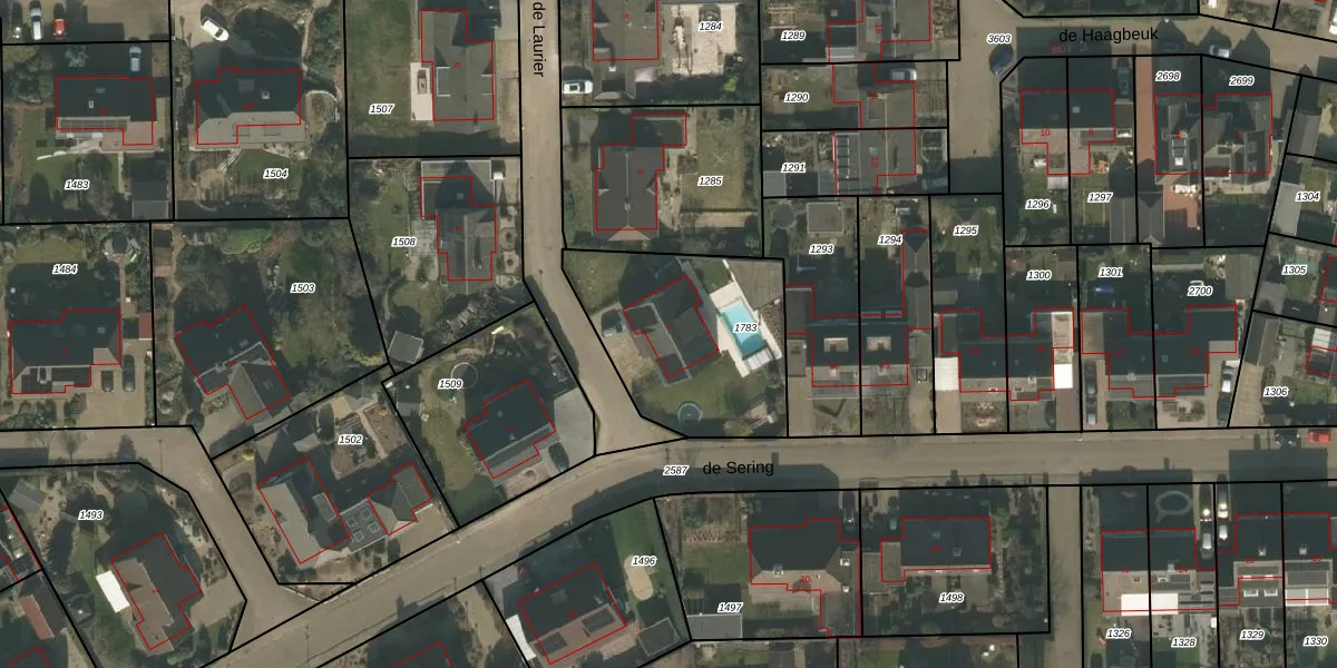 de Laurier 1 is gelegen op kadastraal perceel BMR00L1783. Deze kadastrale aanduiding is uniek en wordt gebruikt door het Kadaster om eigendomsrechten en andere zakelijke rechten vast te leggen. Het perceel maakt onderdeel uit van de kadastrale gemeente Boxmeer.