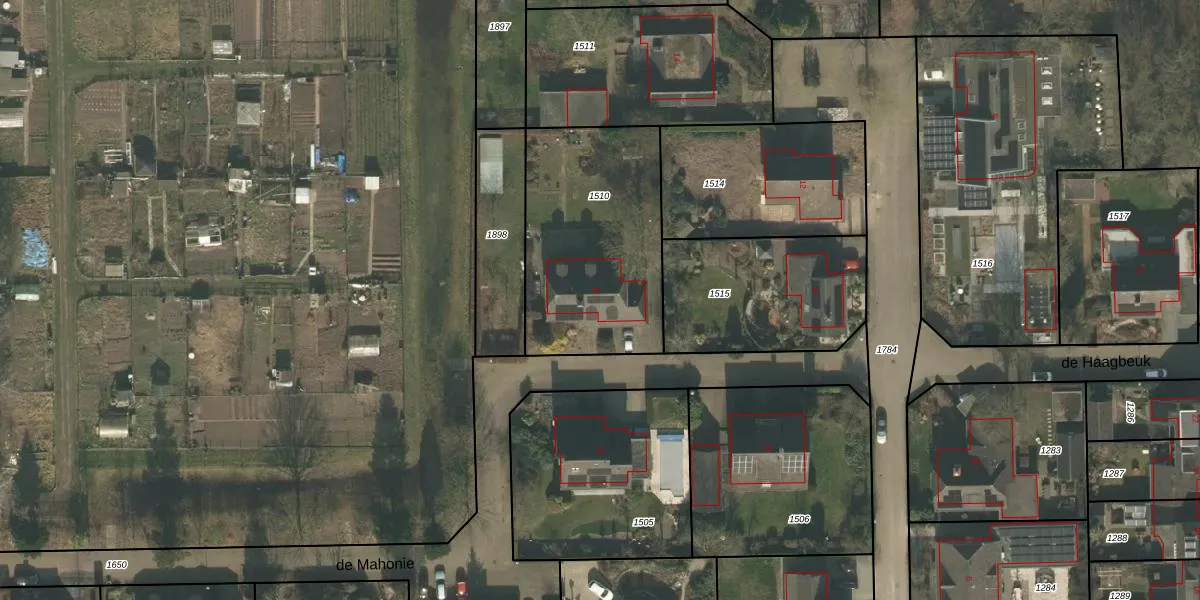 Het perceel waarop de Mahonie 16 staat heeft een oppervlakte van 865 m². Dit is een groot perceel. De perceeloppervlakte wordt geregistreerd door het Kadaster. Gedetailleerde informatie over de maten van dit perceel kunt u vinden in het rapport Kadastrale kaart met maatvoering van de Mahonie 16.