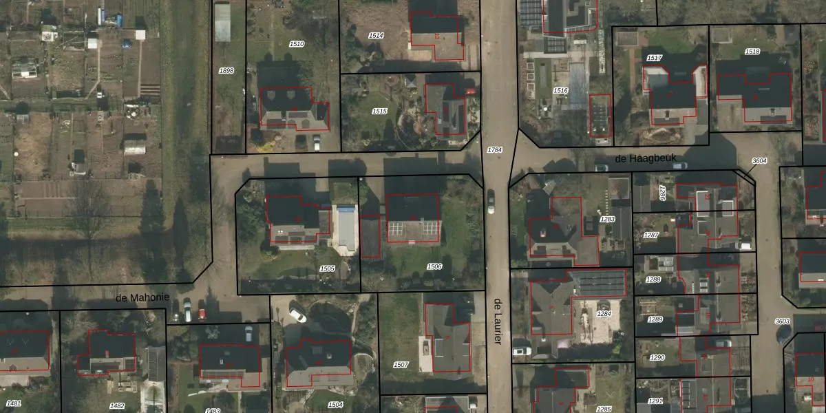 Het perceel waarop de Mahonie 23 staat heeft een oppervlakte van 835 m². Dit is een groot perceel. De perceeloppervlakte wordt geregistreerd door het Kadaster. Gedetailleerde informatie over de maten van dit perceel kunt u vinden in het rapport Kadastrale kaart met maatvoering van de Mahonie 23.