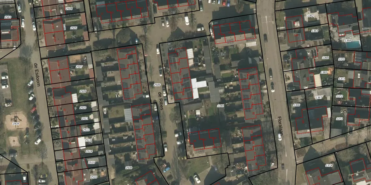 Het perceel waarop de Ribes 18 staat heeft een oppervlakte van 4745 m². Dit is een zeer groot perceel. De perceeloppervlakte wordt geregistreerd door het Kadaster. Gedetailleerde informatie over de maten van dit perceel kunt u vinden in het rapport Kadastrale kaart met maatvoering van de Ribes 18.