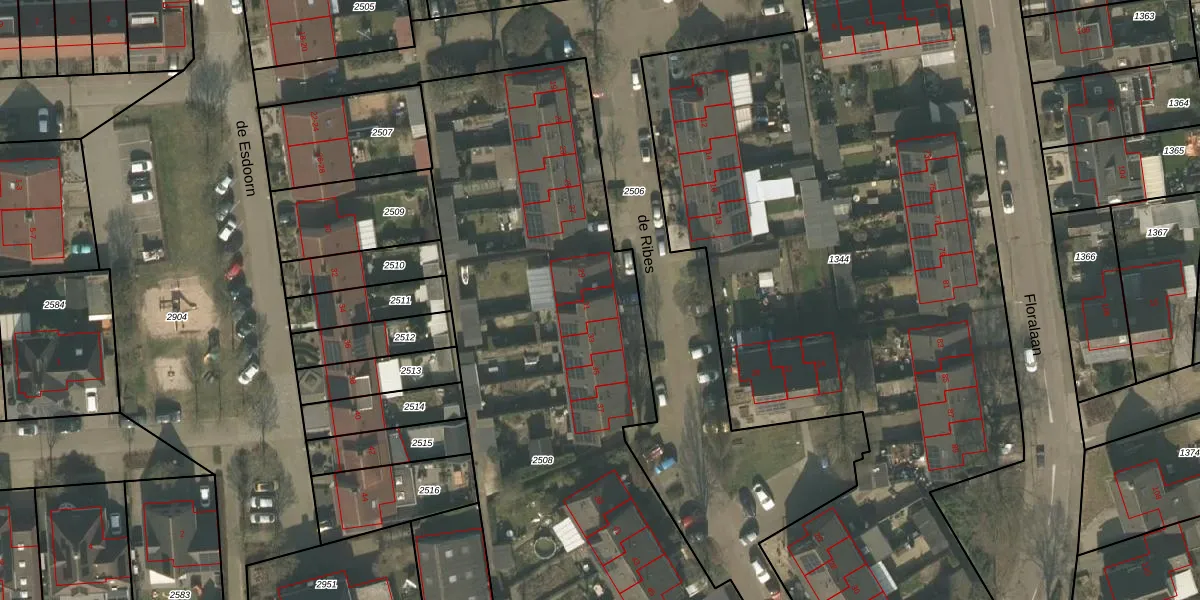 Het perceel waarop de Ribes 31 staat heeft een oppervlakte van 4485 m². Dit is een zeer groot perceel. De perceeloppervlakte wordt geregistreerd door het Kadaster. Gedetailleerde informatie over de maten van dit perceel kunt u vinden in het rapport Kadastrale kaart met maatvoering van de Ribes 31.