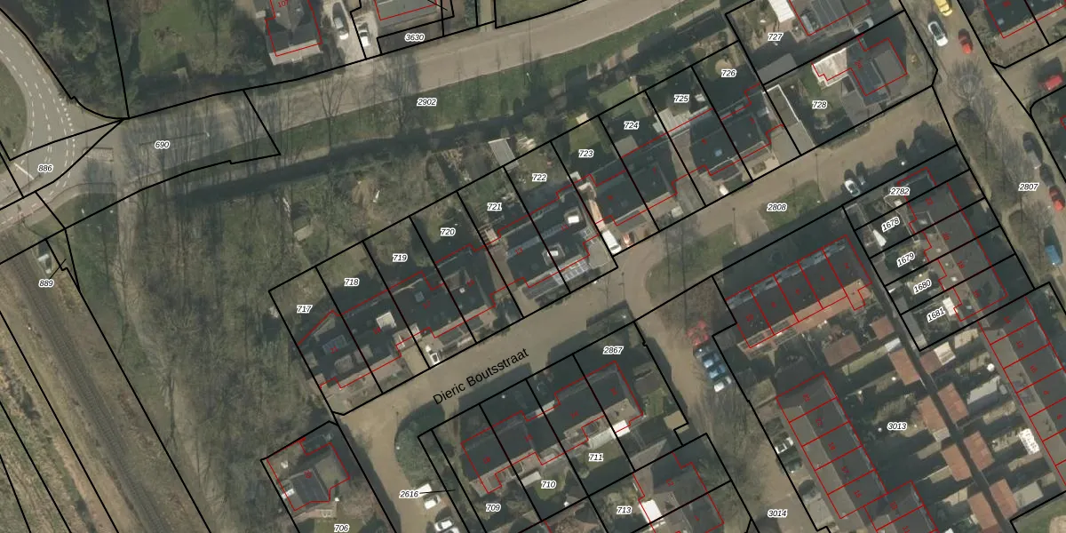 Dieric Boutsstraat 13 is gelegen op kadastraal perceel BMR00L721. Deze kadastrale aanduiding is uniek en wordt gebruikt door het Kadaster om eigendomsrechten en andere zakelijke rechten vast te leggen. Het perceel maakt onderdeel uit van de kadastrale gemeente Boxmeer.